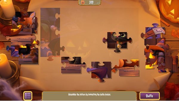 Прогуляйтесь по туманным улочкам, освещенным фонарями, посетите достопримечательности, например, "Таверну с привидениями", "Школу магии" и "Заколдованную пекарню". Осмотрите каждый уголок в поисках спрятанных амулетов, тыкв и волшебных диковинок, раскройте секреты этой уютной деревни, украшенной к Хеллоуину. Собирайте жутковатые, но милые пазлы, зарабатывайте монеты и наполните полку трофеями. В игре есть режим без времени.