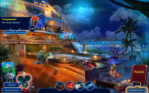Кто же знал, что долгожданная вечеринка на круизном лайнере, где находится известное во всем мире казино, закончится вереницей смертей. За карточным столом смерть настигла нескольких влиятельных людей. Не так планировали отдохнуть знаменитая ведущая канала "Вирджиния и песик" и ее старый друг - частный детектив. Под подозрением находится владелец круизного лайнера. Чтобы вычислить преступника, детективу предстоит выполнить все квестовые задания, сыграть в мини-игры и собрать как можно больше фишек.